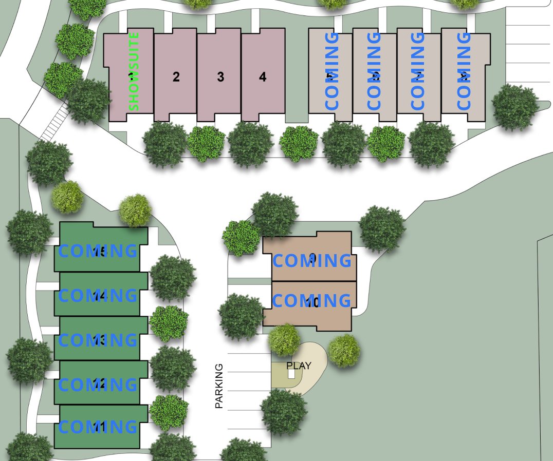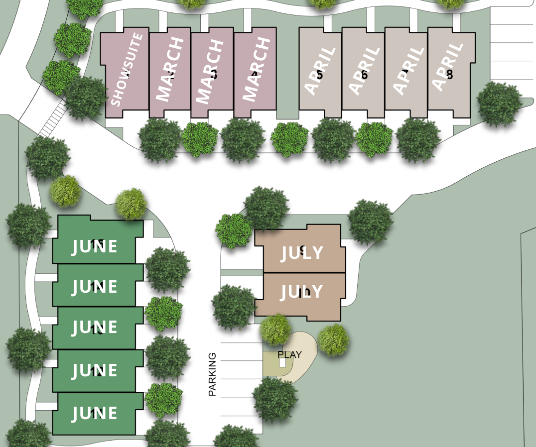 Construction is expected to be complete for all units by August 2026: units 1-4 by MARCH 1st, units 5-8 by APRIL 1st, units 11-15 by JUJE 1st and finally units 9-10 by JULY 1st, 2026!